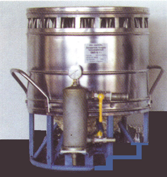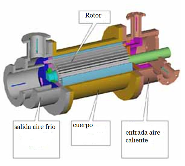 Este enfriador de gas pulsante contiene una distribuidora giratoria, con la ayuda de la cual se realiza una entrada y salida cilíndrica de gas en volúmenes de magnitud constante.